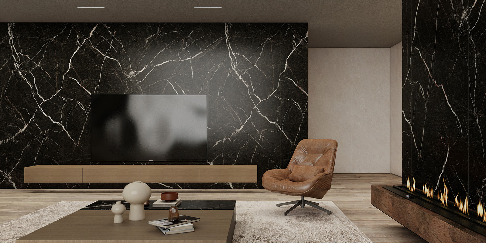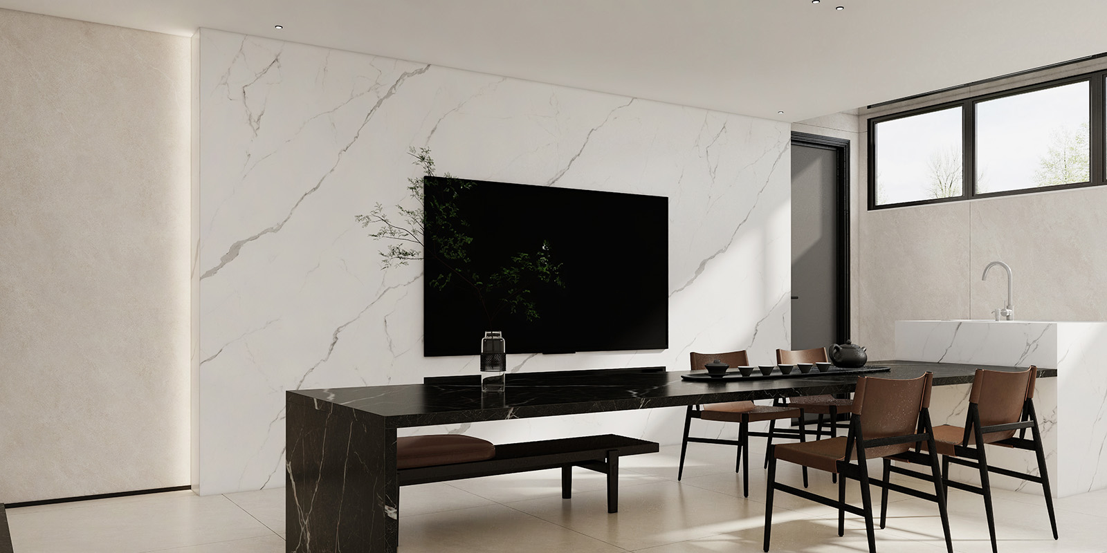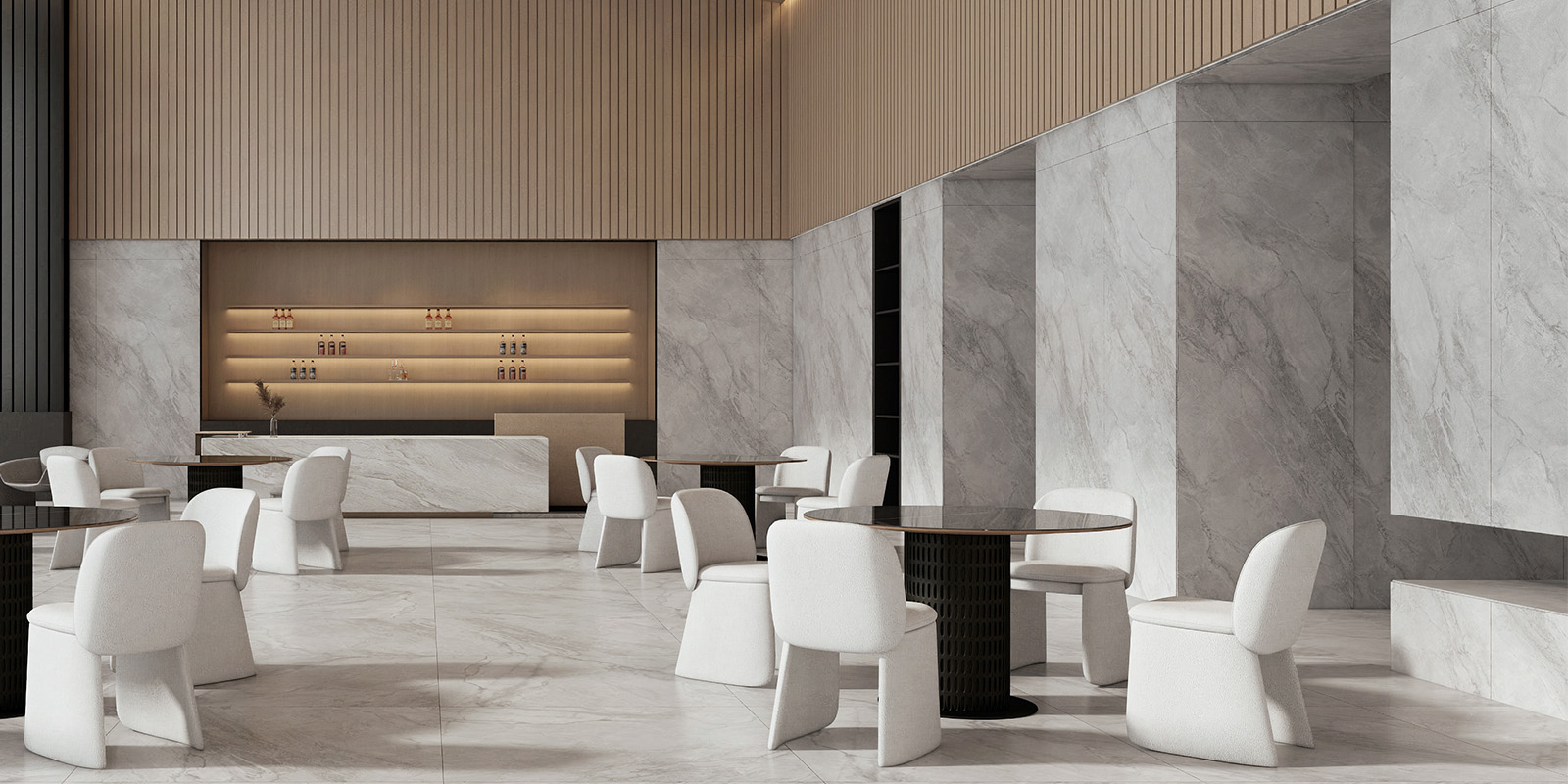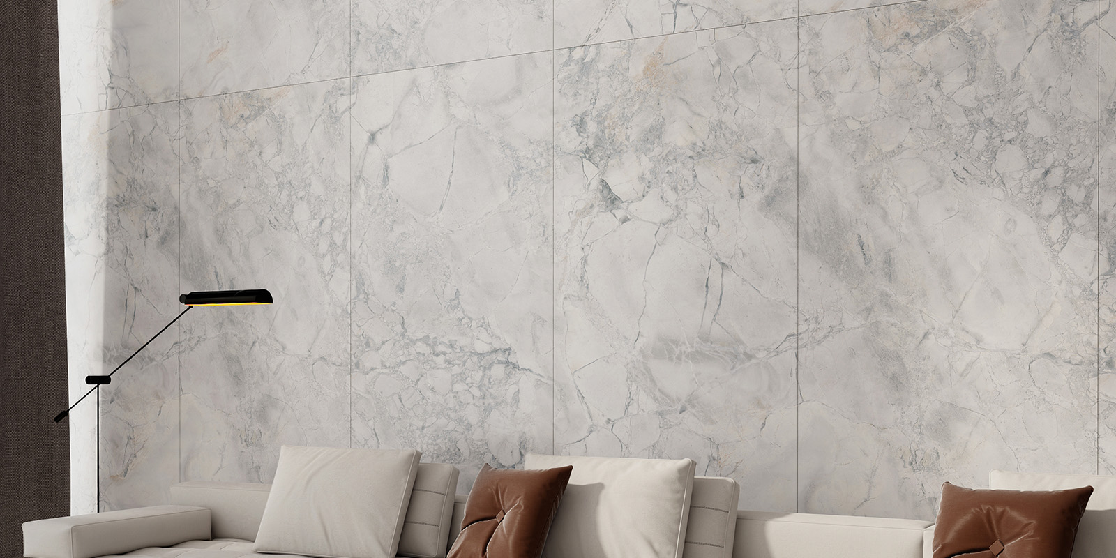 精选天然大理石材,1200X2780MM,6毫米厚度,数码精雕和柔雅微光工艺,一片到顶,适用空间广